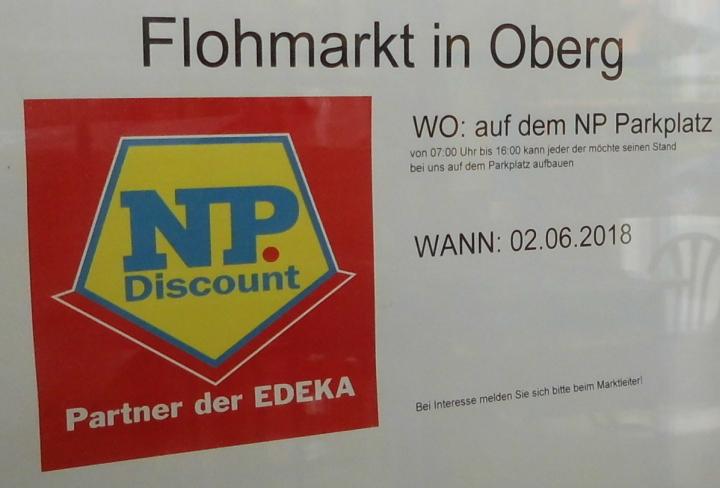Von 7 bis 16 Uhr soll auf dem NP-Parkplatz in Oberg ein Flohmarkt stattfinden. Bei Interesse soll man sich beim Marktleiter melden.