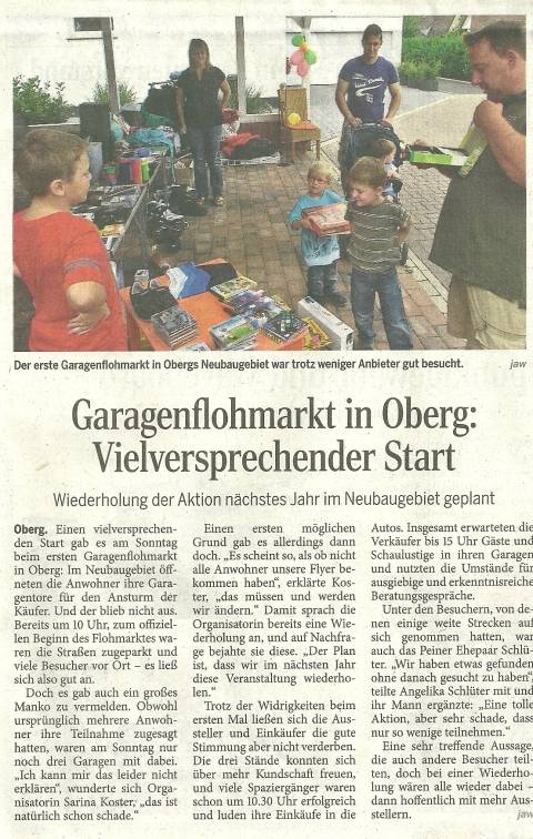 Offenbar ist sowohl an den Veranstaltern, als auch an der PAZ vorbei gegangen, dass in Oberg bereits 2014 und auch 2015 Flohmärkte statt gefunden haben. (siehe unten)