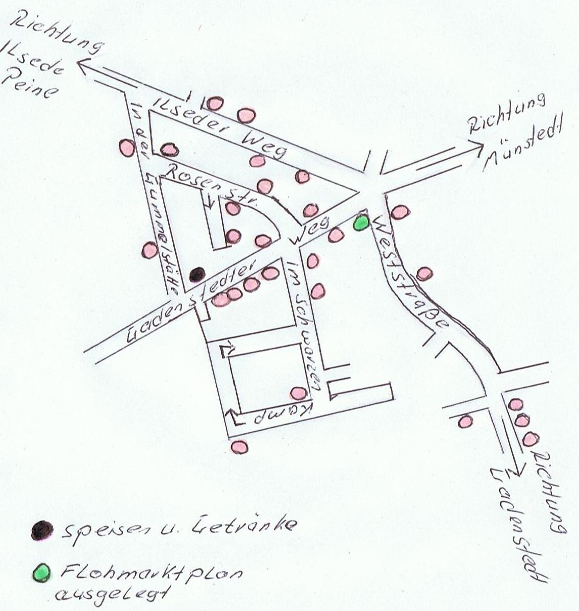 konnte an ca. 60 Ständen in der Weststr, dem Schwarzen Kamp, dem Gadenstedter Weg, der Gummelstätte, der Rosenstr. und dem Ilseder Weg gestöbert werden. Der Flohmarkt war gut ausgeschildert.