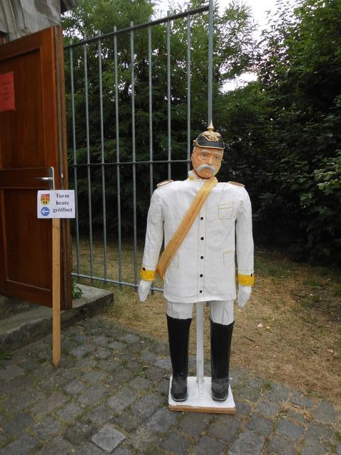 Die Standfestigkeit des alten Haudegens hatte über die Jahre durch arge Rückenprobleme gelitten. Nach einer erfolgreichen Bandscheiben-OP konnte ich ihn heute wieder zu seinem Turm befördern, wo er bei Turmöffnung die Besucher begrüssen kann.
