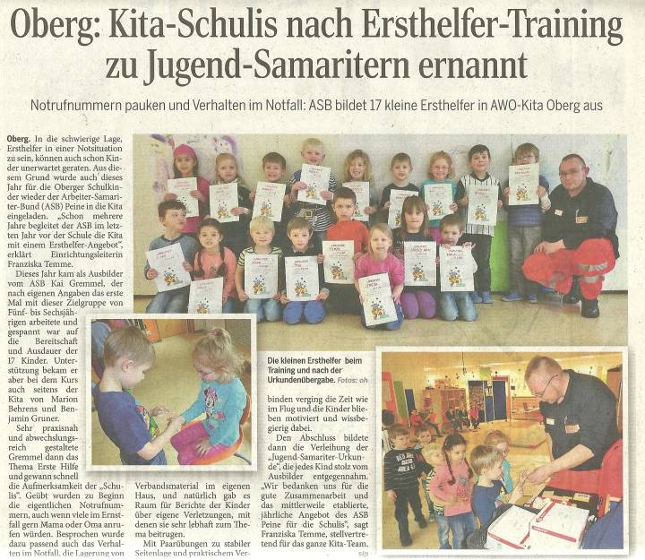 | AWO-Kindertagesstätte Oberg Wohlenbergstraße 9 31246 Ilsede OT Oberg Leitung: Frau Franziska Temme Telefon 0 51 72 / 84 00 E-Mail: kita-oberg@awo-bs.de |