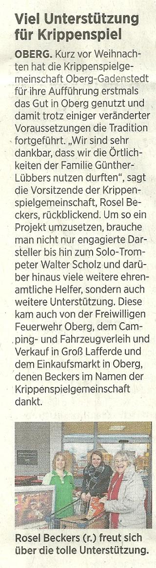 - PAZ vom 1. Februar: Viel Unterstützung für Krippenspiel