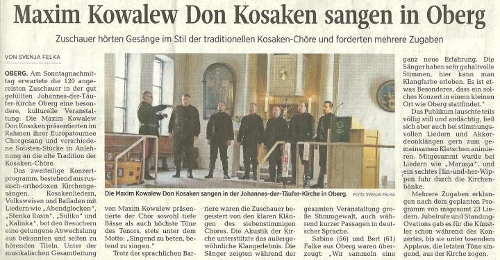 - PAZ vom 6. Februar: Maxim Kowalew Don Kosaken sangen in Oberg