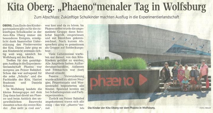 - PAZ vom 16. Juni:Kita Oberg: "Phaeno"menaler Tag in Wolfsburg