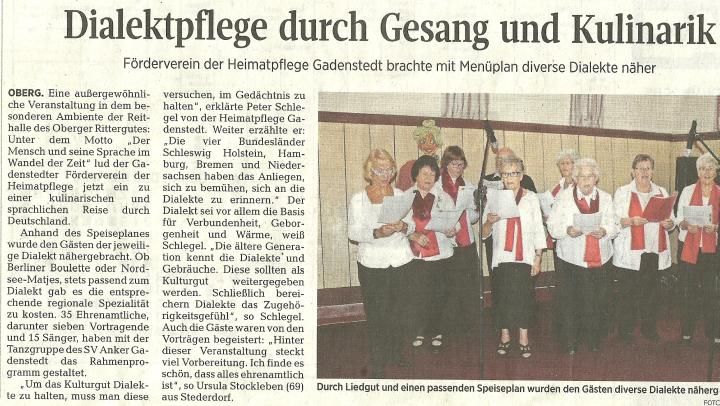 - PAZ vom 15. September: "Sprache und Speise" in der Reithalle des Rittergutes in Oberg